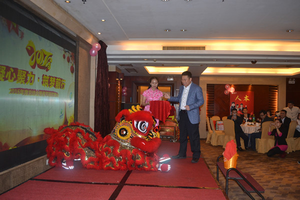 董事長李有生為生產(chǎn)部同事表演的醒獅點(diǎn)睛,寓意:2017年紅紅火火!