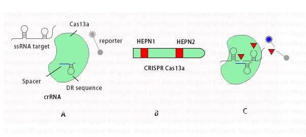 橫向流動(dòng)技術(shù)在POCT檢測(cè)中占據(jù)重要地位,最近一個(gè)顯著發(fā)展是用于檢測(cè)目標(biāo)DNA或RNA的高靈敏度SHERLOCK技術(shù),它是利用成簇的規(guī)律間隔短回文重復(fù)序列(CRISPR)技術(shù),其原理是將病毒RNA靶標(biāo)逆轉(zhuǎn)錄呈cDNA后通過等溫?cái)U(kuò)增技術(shù)進(jìn)行擴(kuò)增,擴(kuò)增產(chǎn)物把T7RNA聚合酶轉(zhuǎn)錄回RNA,從而達(dá)到擴(kuò)增RNA的目的。