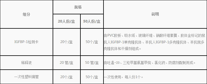 用于體外定性檢測(cè)孕婦陰道分泌物中的胰島素樣生長(zhǎng)因子結(jié)合蛋-1(IGFBP-1)。