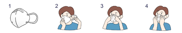 4.用手捂住面罩,然后呼氣,如果感覺(jué)到空氣從面罩邊緣逸出,則重新調(diào)整鼻梁和耳帶,以確保氣密性。